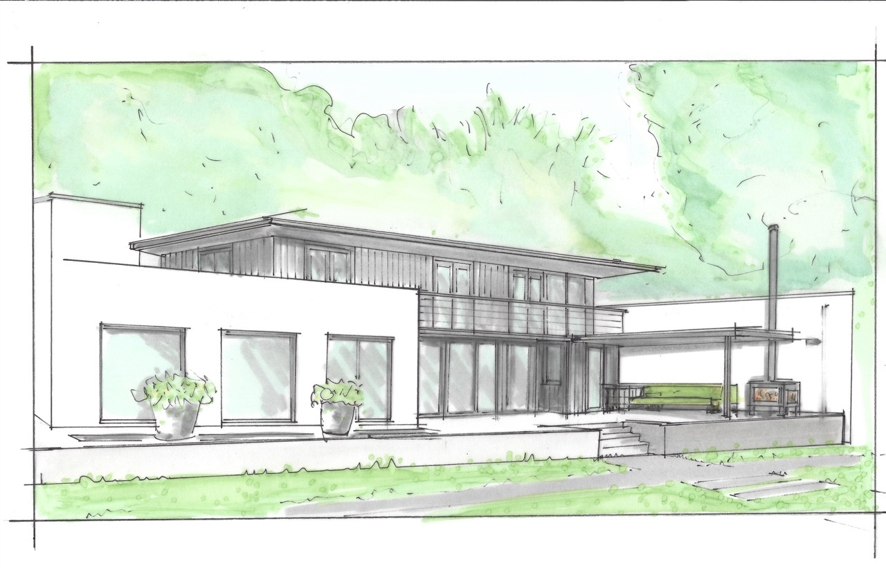 - Vrijstaande villa (1969) met moderne uitbouw (2007)