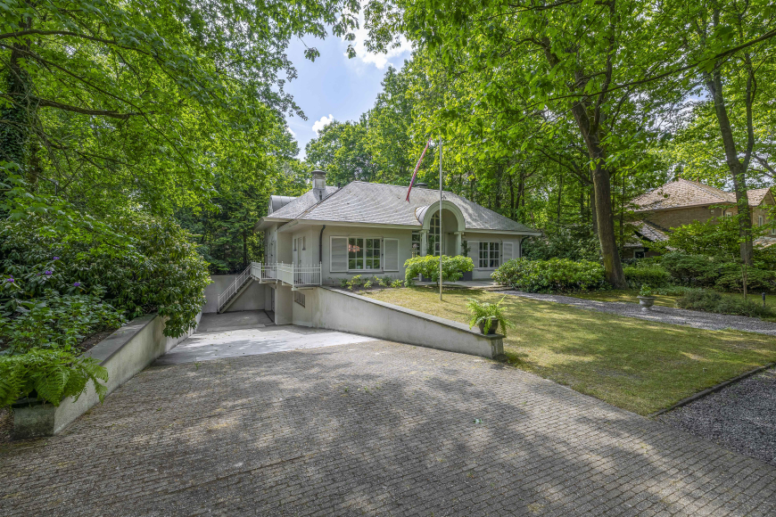 Via de oprit aan de voorzijde van de woning is de garage in het souterrain eenvoudig te bereiken. Daarnaast leidt een charmant grindpad naar de overdekte entree.